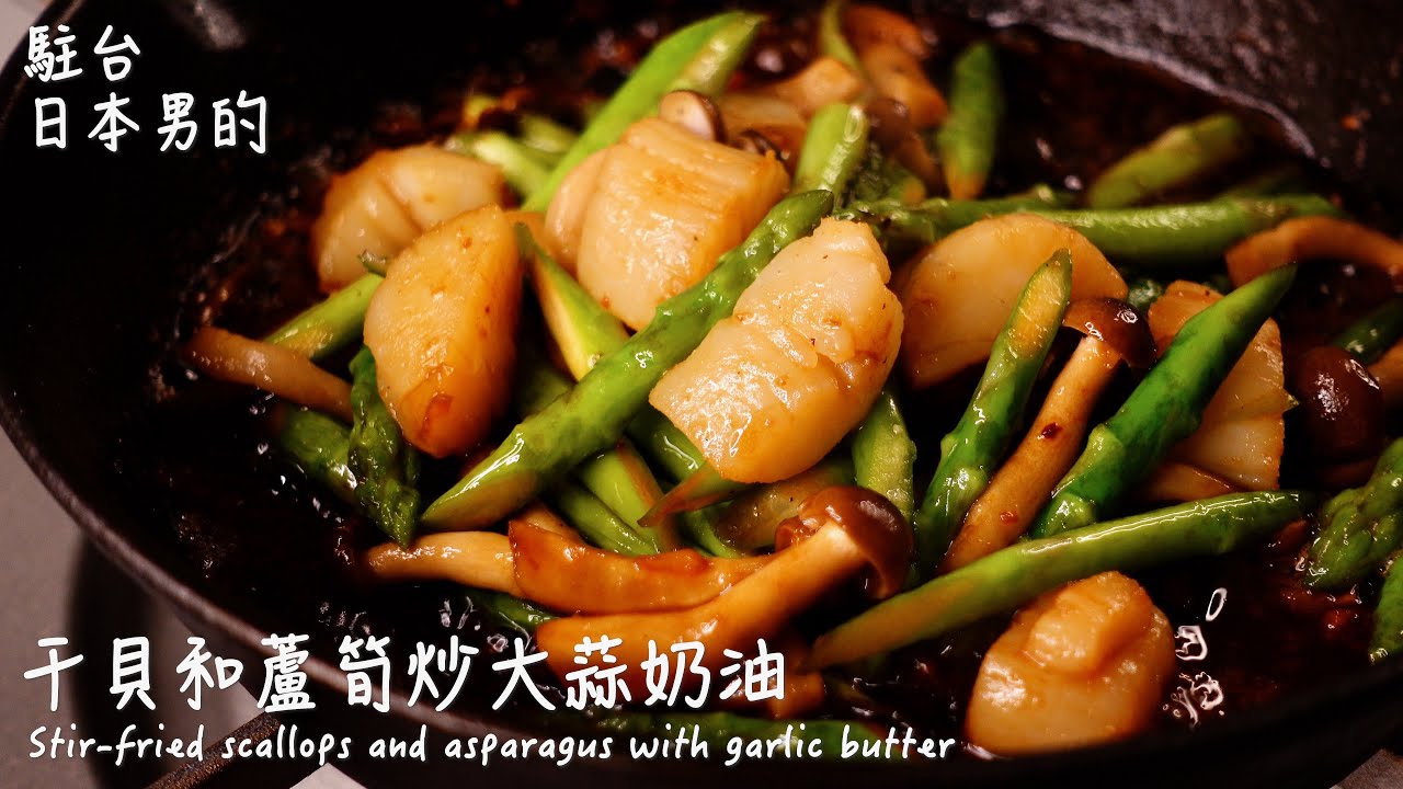 干貝和蘆筍炒大蒜奶油做法 / Stir-fried scallops and asparagus with garlic butter / ホタテとアスパラのガーリックバター炒め 〜簡單日式料理食譜〜