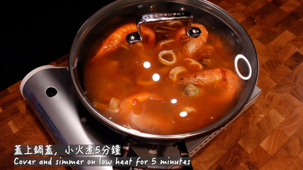 19.蓋上鍋蓋,小火煮5分鐘 _ Cover and simmer on low heat for 5 minutes