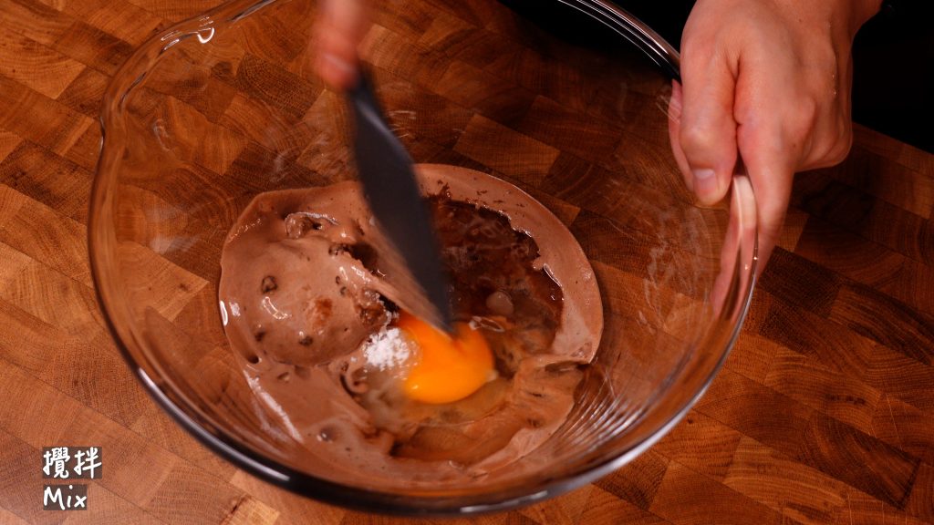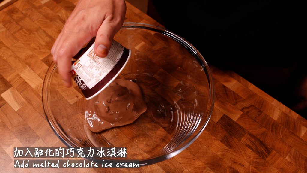 2.加入融化的巧克力冰淇淋 Add melted chocolate ice cream