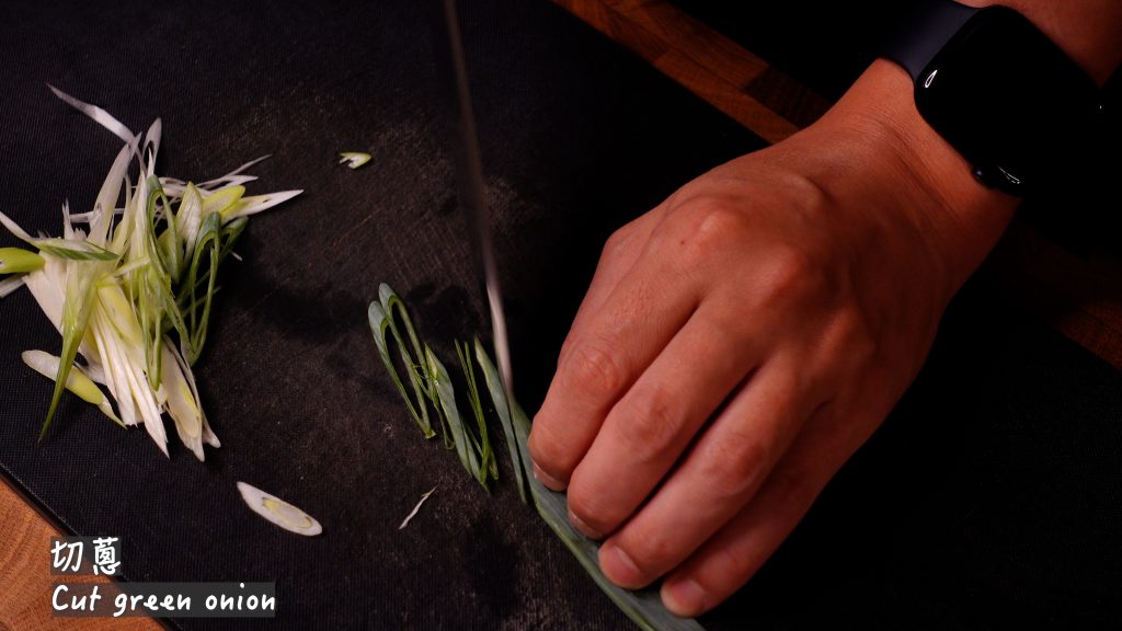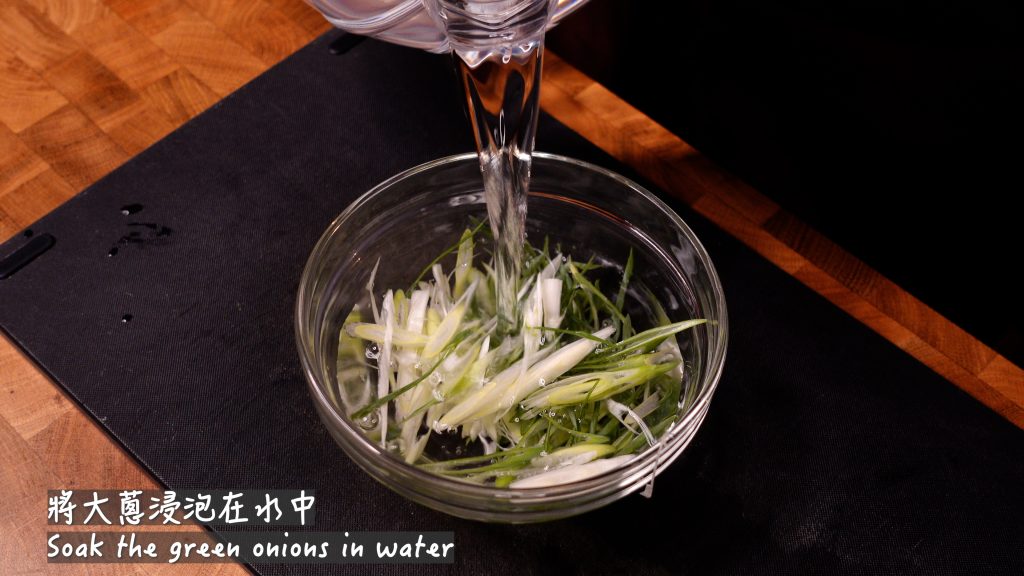 2.將大蔥浸泡在水中 / Soak the green onions in water